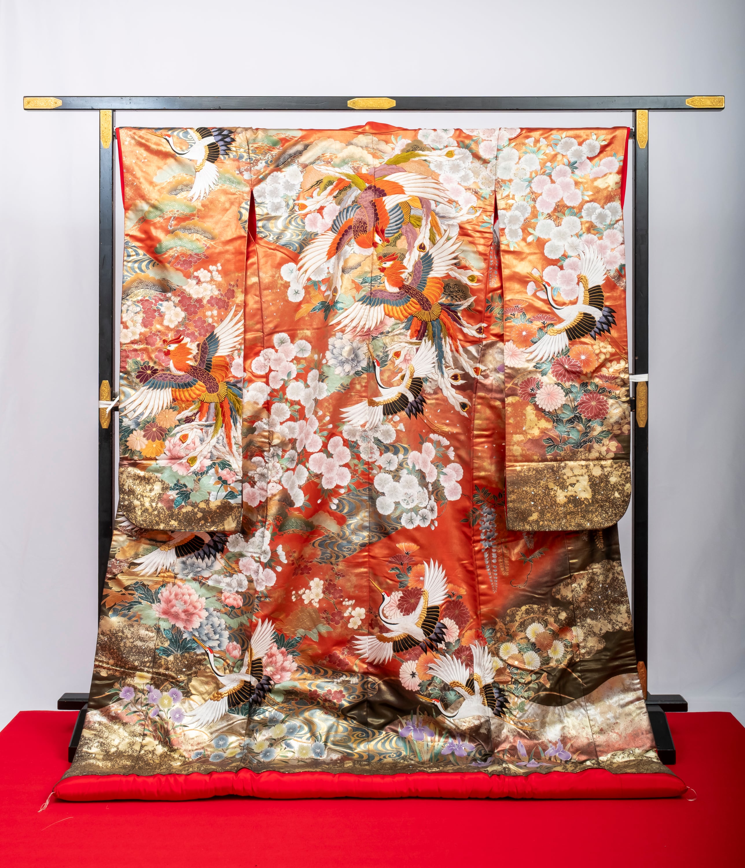 【色打掛】IU-0251 西陣織赤地白梅鳳凰